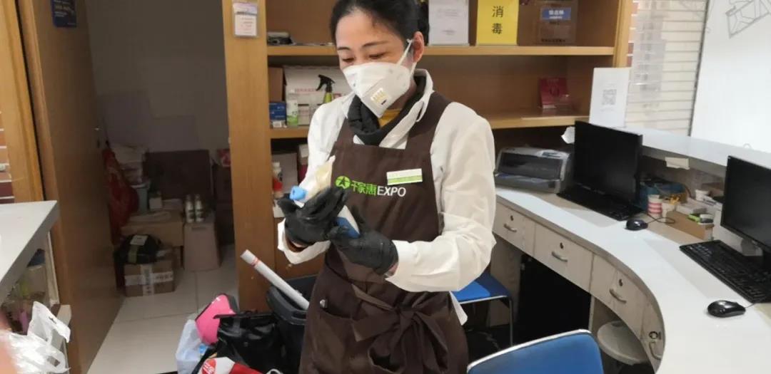 每天營業(yè)前、營業(yè)中和營業(yè)后,她和同事們都要使用消毒清潔劑在店內(nèi)進(jìn)行無死角殺菌消毒,對收銀臺、邊側(cè)扶手、手推車、手提籃、服務(wù)臺、寄包柜等高頻接觸的重點區(qū)域,更是要每2小時就要進(jìn)行一次消殺工作。
