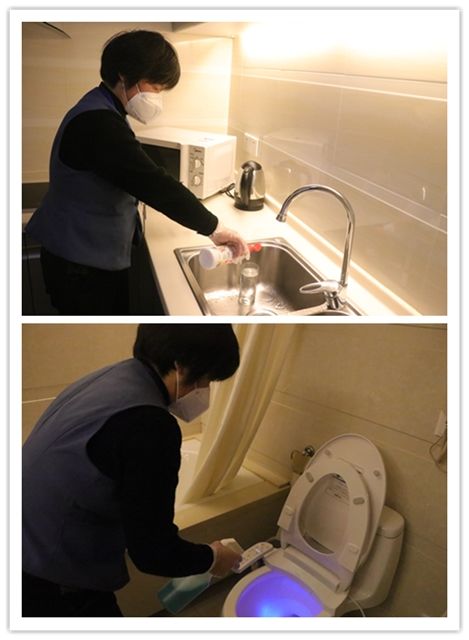 邱仲紅看在眼里急在心里,心想,如果自己輪休在家,萬(wàn)一替班同事與客人溝通不順暢怎么辦?于是,她主動(dòng)申請(qǐng)上班,每天進(jìn)房后第一件事就是開(kāi)窗通風(fēng),把房間打掃干凈。然后,按防疫程序,將門把手、遙控器、電話、五金件,就連快遞送入房間前都會(huì)用酒精逐一消毒,確保衛(wèi)生安全。