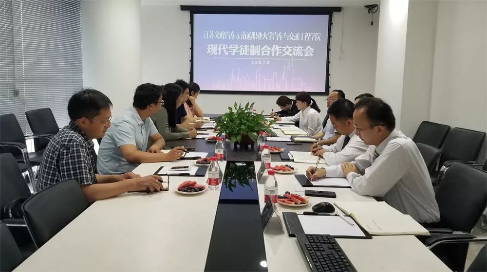 繼文峰汽車與江蘇航運職業技術學院開展“現代學徒制交流會”后,為進一步加強企業人才培養及引進,7月3日下午,文峰汽車與南通職業大學聯合開展“校企合作交流會”。出席會議的有:文峰汽車副總經理顧毅、人力資源總監唐平、文峰汽車商學院副院長王祖安、南通職業大學交通學院院長曹健、副院長樊登柱、萬志敏、汽修專業負責人吳煒、汽車營銷專業負責人陸瓊曄等人。