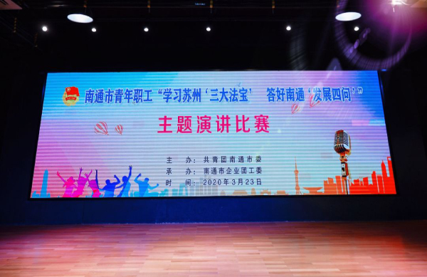 3月23日下午,南通啟瑞廣場青春激揚。共青團南通市委主辦的南通市青年職工“學習蘇州‘三大法寶’,答好南通‘發展四問’”主題演講比賽正在進行。