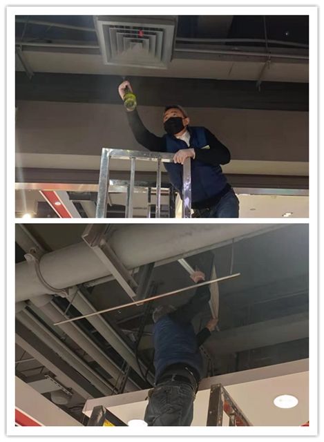 加強(qiáng)各大門店的空氣流通,保證新風(fēng)系統(tǒng)在營(yíng)業(yè)期間內(nèi)不間斷工作,中庭樓頂換氣窗保持24小時(shí)常開(kāi),商場(chǎng)排煙系統(tǒng)每小時(shí)開(kāi)啟一次,保持空氣的流通。